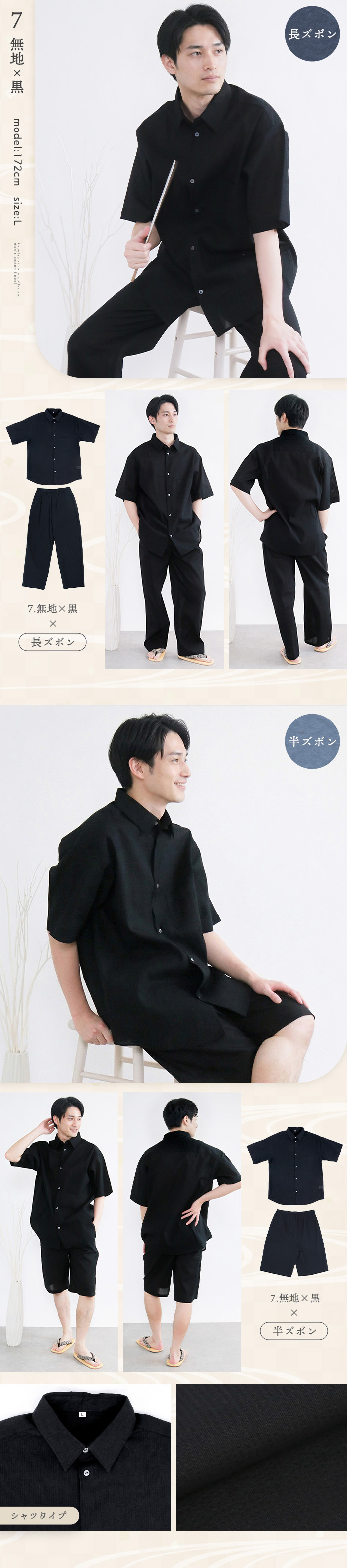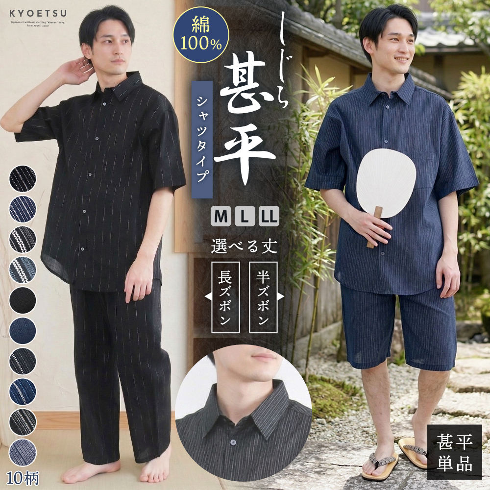 甚平 メンズ 【 シャツタイプ 】 長ズボン 半ズボン 単品 綿 しじら ギフト プレゼント 誕生日 お父さん 父の日 おしゃれ シャツ パジャマ 部屋着 メンズ甚平 ボタン 上下セット セットアップ ルームウエア 夏 花火大会 夏祭り 選べる ズボン 丈 じんべい M L LL (rg)