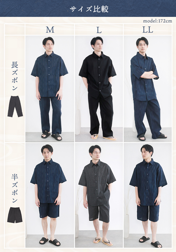 長ズボンと半ズボンから選べる丈で、シーンに合わせて着こなせます。