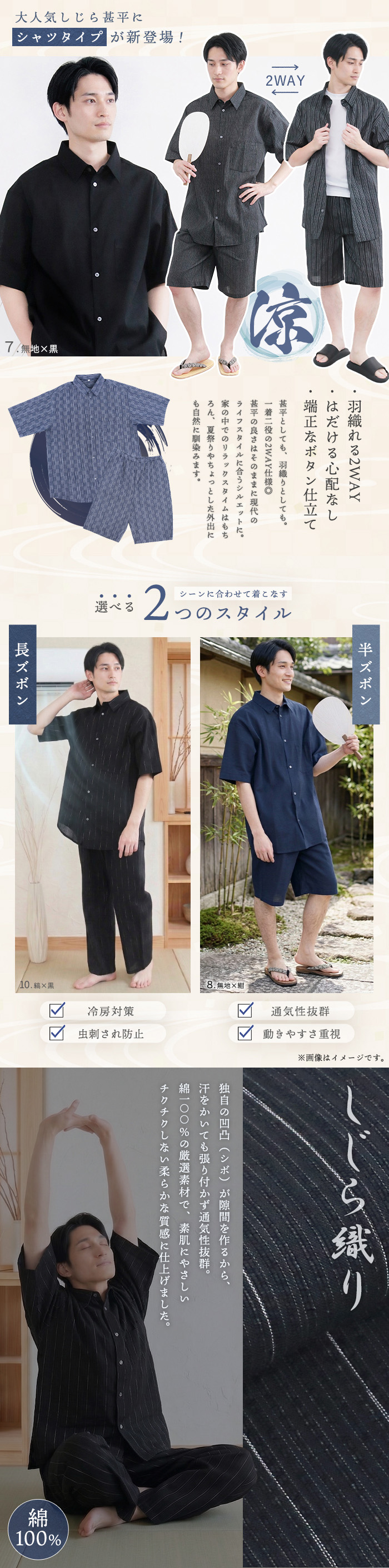 シャツタイプの羽織としても使える甚平が新登場!