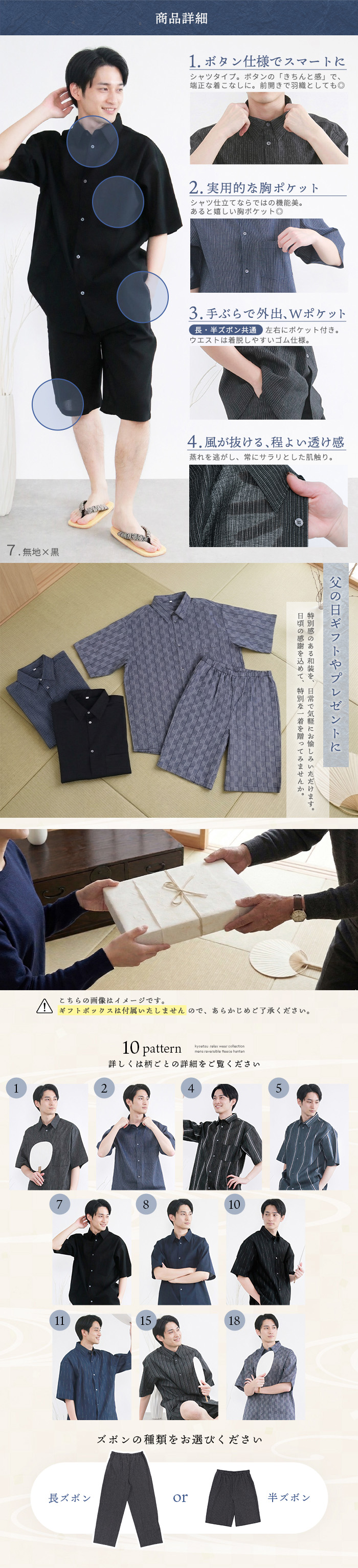 甚平 ジンベイ シャツ 長ズボン 半ズボン jinbei JINBEI 和装 着物 販売 購入 部屋着 上下セット セットアップ ルームウエア パジャマ M L LL メンズ 男性 10代 20代 30代 40代 50代 高校生 大学生 アラサー アラフォー 安い 選べる 10柄