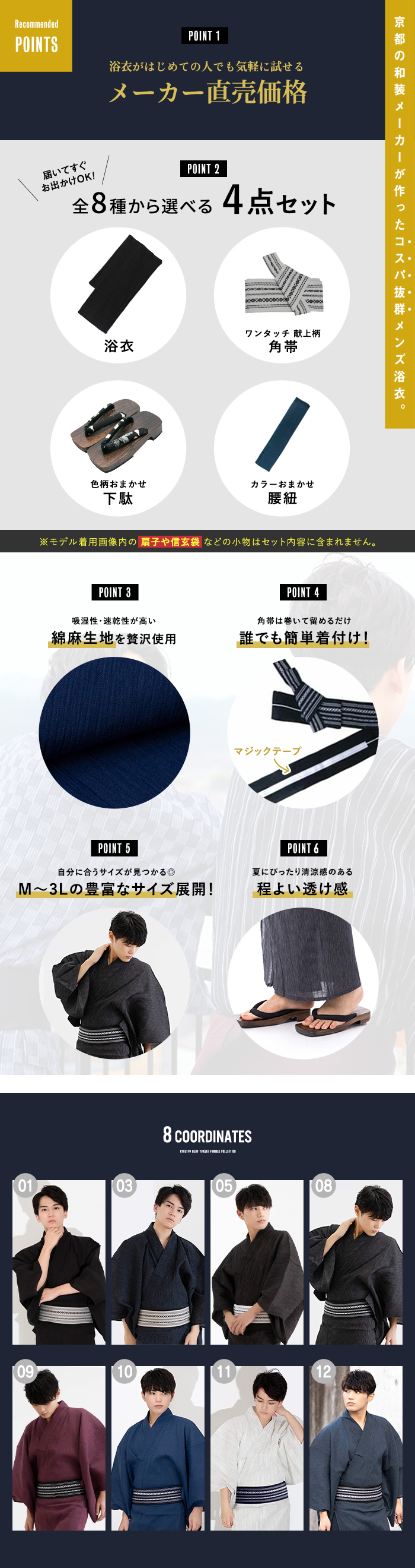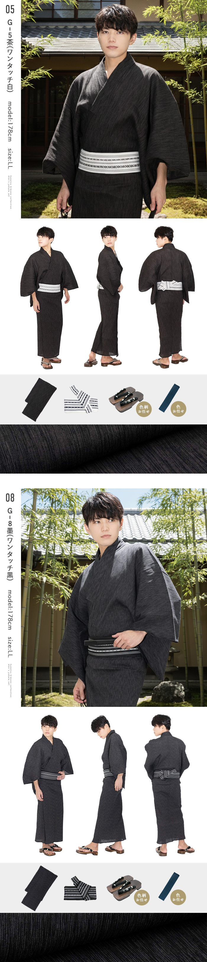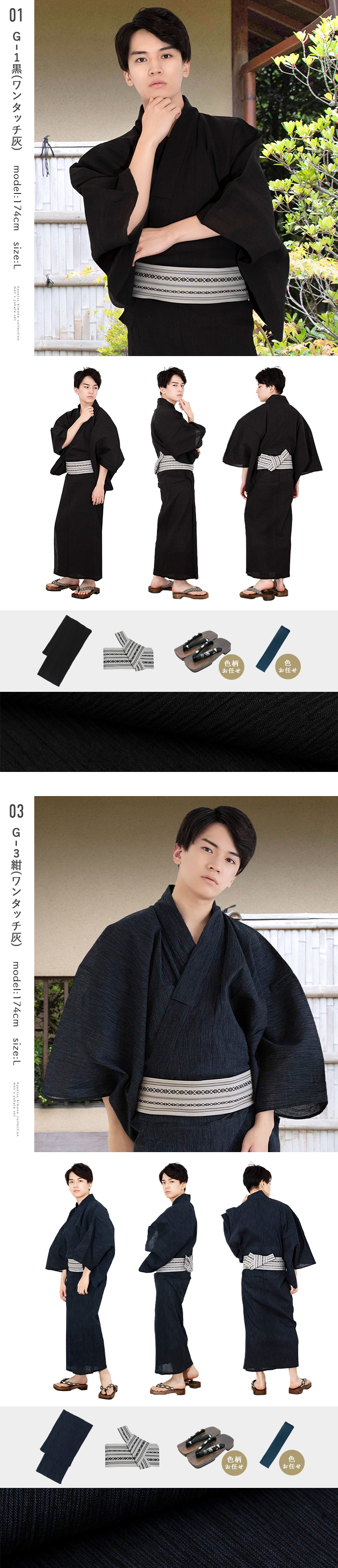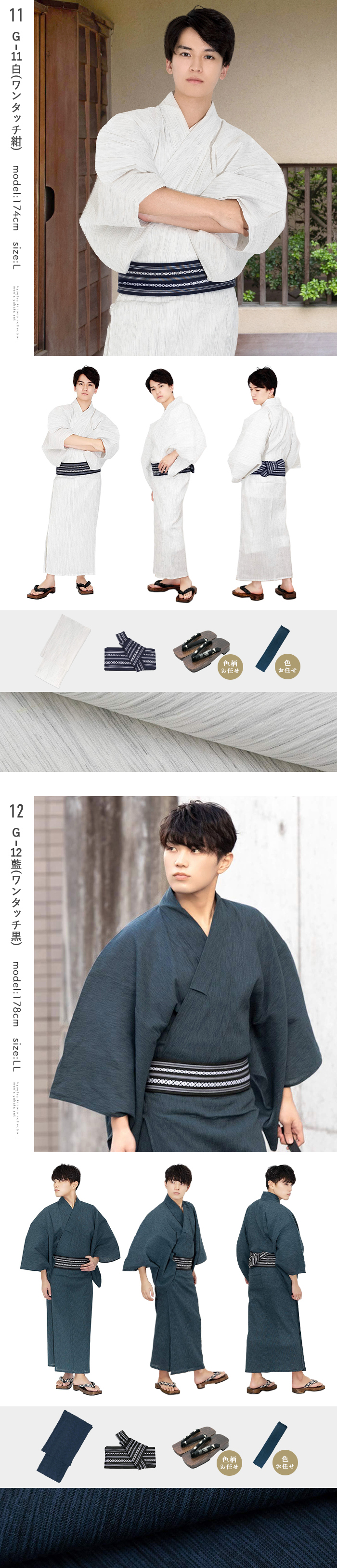 《いなせな夏》メンズ浴衣4点セット 綿麻楊柳シリーズ